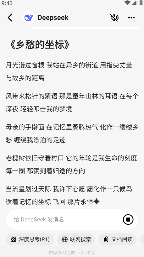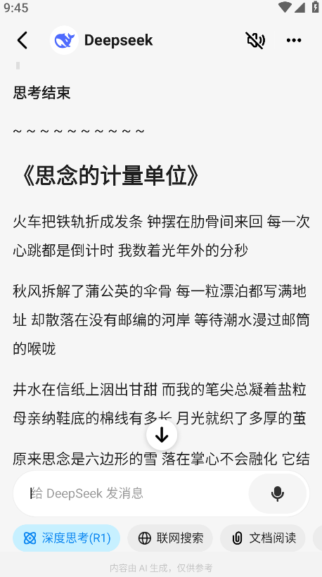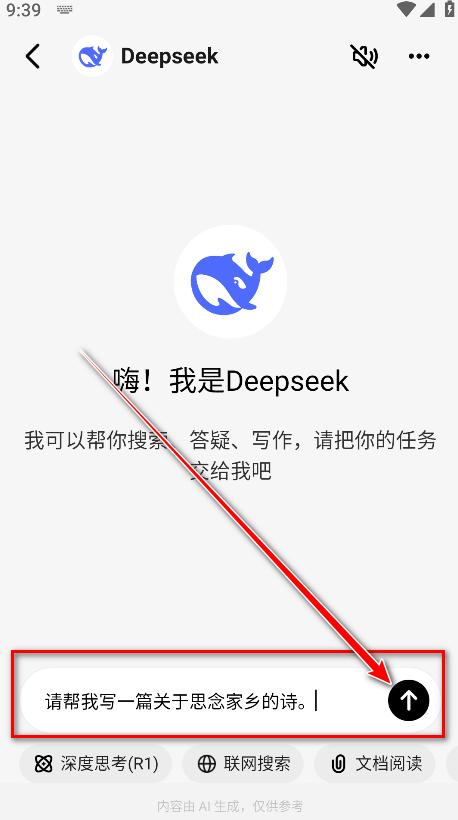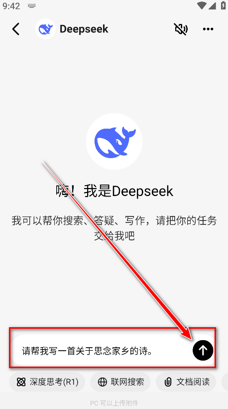 7.还可以点击下方的深度思考、联网搜索、文档阅读,在这里小编以点击深度思考为例。