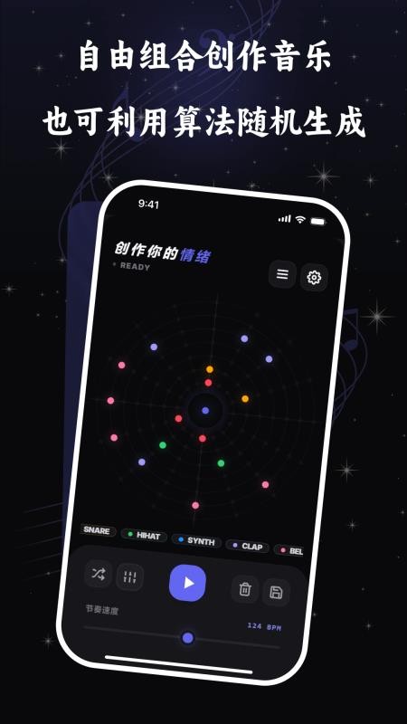 还可让你实时进行自由创作,就可自由组合音乐来进行随机生成,自由创作音色。