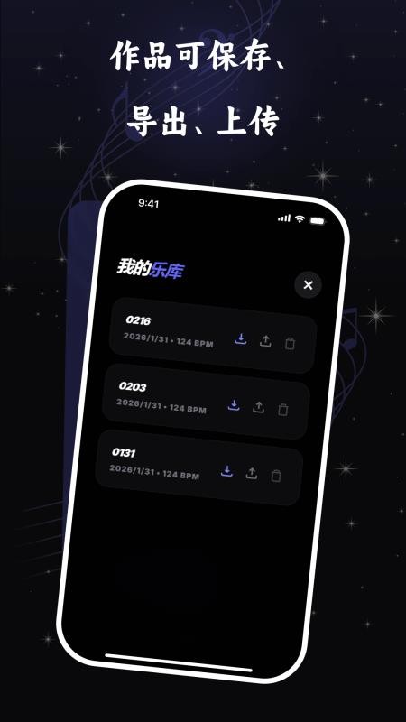能够对自己创作的作品进行保存下来,轻松存储在乐库中,进而可以实时保存。