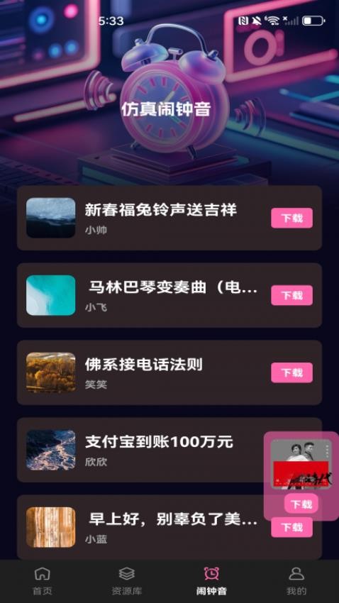 具备许多仿真的闹钟音,直接可以下载喜欢铃声;