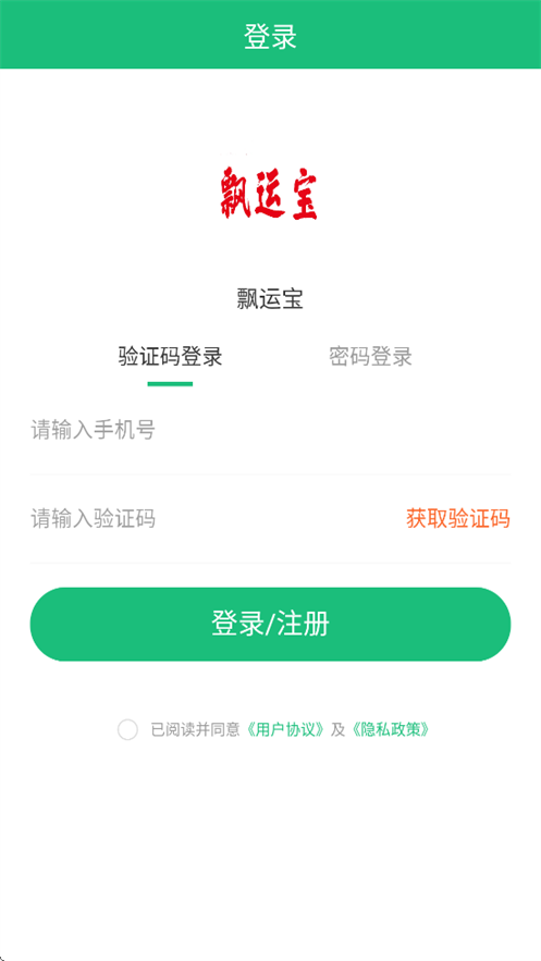 下载安装并打开飘运宝app,在用户协议和隐私政策提示界面点击同意