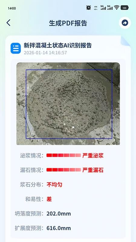 详细的PDF报告信息,在应用中可一览无余,知道混凝土识别结果更明了;