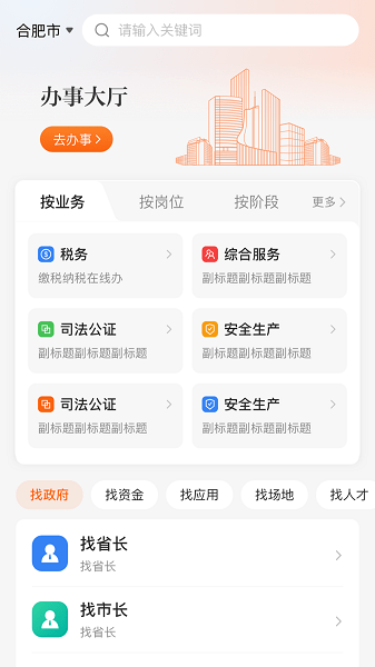 - 提供政府部门的相关服务,包括工商注册、税务办理、资质认证等,支持企业法人进行在线申请和办理。