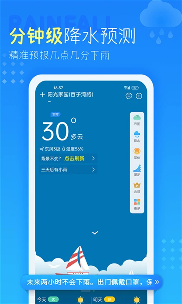 短临降雨:分钟级降水量预报,每时每刻雨雪变化,尽在掌握。