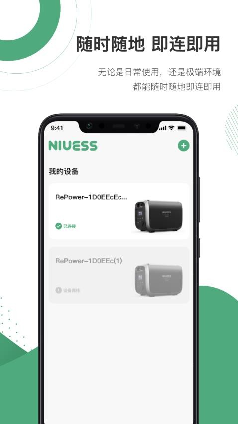 NIUESS软件可以帮助用户轻松管理智能储能设备,这里可以对智能硬件设备实现互联互通,快速发现智能设备,简单便捷的连接起来,就可以轻松操作,远程控制设备,根据使用习惯来个性化定制设备场景,实现省心的控制,更好的进行使用。