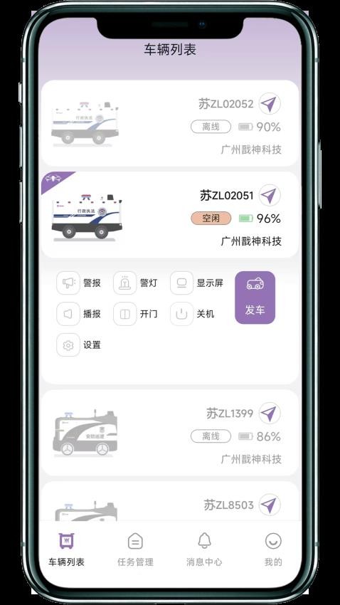 1、打开应用就可以让你清晰查看车辆列表,随时进行园区的巡逻。