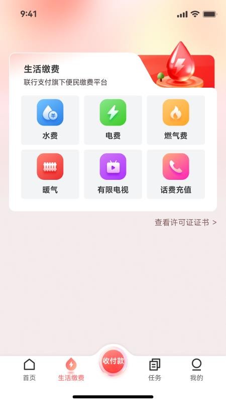 其中的生活缴费功能可支持水费、电费、燃气费等各种生活用费的在线缴费。
