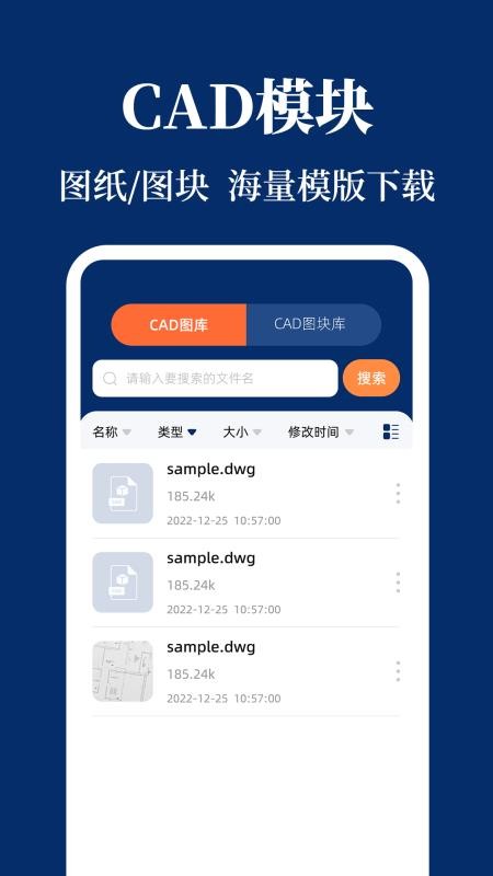 可通过名称、类型、大小和修改时间等条件筛选图纸,便于快速且精准的找到;