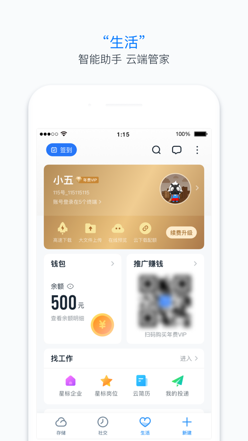 115生活app是一款专业,安全,好用的个人云存储服务平台,平台拥有存储,社交,生活等等功能服务,可以给予用户更棒的云存储体验,需要的朋友欢迎前来下载使用。