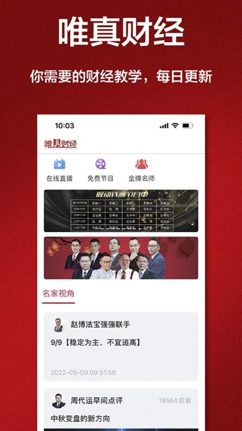 唯真财经APP最新版是一款提供专业财经教学课程来学习财经知识的软件,在软件中推出有超多的财经教学课程可以让用户免费学习,通过学习财经课程教学知识来丰富自身的财经知识储备,其中还汇集了全国各地的专业名师来为你答疑解惑,让用户可以向专业名师请教财经相关问题来获取解答学习知识,对每位名师进行详情介绍展示来让用户轻松掌握每位名师的简介详情,增加对每位名师在专业领域内能力的了解,用户可以观看财经直播听专家大佬分析解读财经市场以此来学习投资炒股市场方面的专业知识,有需要的用户就快来下载唯真财经官方版软件进行使用吧!