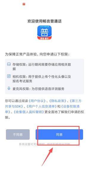 1、打开应用后阅读权限申请提示框,点击同意进入应用首页。
