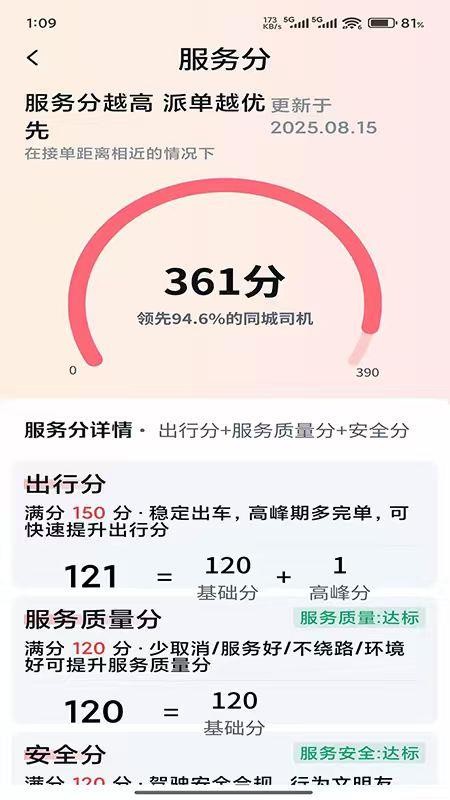 将司机的服务分直观展示,司机可以在线查看了解自己的服务分详情信息。