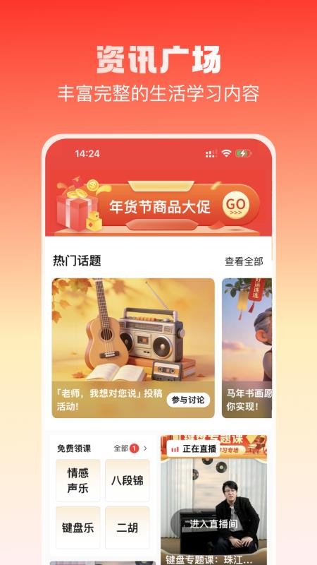 用户可以轻松学习相关的兴趣课程,便捷培养自己的兴趣爱好,一键学习兴趣课程。