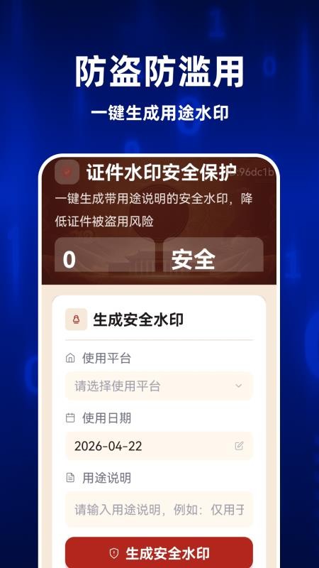 在应用中可以进行证件安全水印生成,帮助你能高效使用,满足用户的使用需求;
