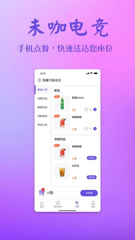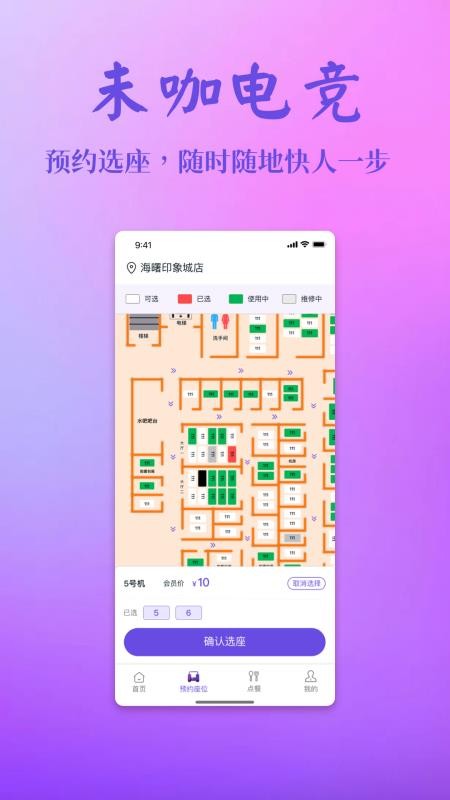 未咖电竞app是为用户提供网咖上网服务的软件,软件会自动定位附近的网咖信息,以后就可以通过软件在线预约订座,让你能够提前预约座位,这样就能到网咖直接上网了,以后无需排队等待,让你获得更舒适的上网体验,是用户以后的网咖上网好助手;未咖电竞官方版还为用户提供了许多的网费充值优惠活动,你在这里就可以快速的享受优惠福利,以后充值网费就会更省钱,充的越多送的越多;还可以通过软件获取网咖的布局,让你可以清楚的掌握不同设备的位置,这样用户就可以选择自己需要的位置快速预约了,需要的用户快来下载吧!