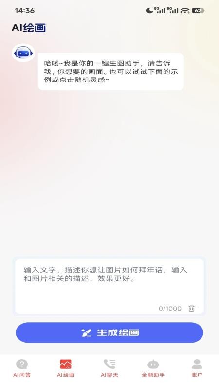 非常智能的AI绘画功能,输入描述词可以智能生成需要的经验绘画作品;