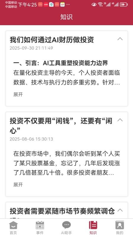 AI财历APP是一款非常专业且智慧的财务规划软件,旨在让每个用户都能通过应用实时了解全球经济情况,知道最新的数据信息,以便能根据情况进行财务管理,满足用户日常分析和抓住财务机会的需求。非常清晰直观的日历界面,帮助你掌握每一天的事件和信息更加直观,方便用户高效分析,助力经营更加高效;同时还为用户提供了AI助手和知识等诸多服务,有问题可以直接在应用中编辑发布,帮助你解决遇到的疑惑更加高效;并且可以自由在线阅览诸多知识,帮助你提升自己的水平,便于抓住优质机会;有兴趣的用户快来本站下载AI财历最新版体验吧!