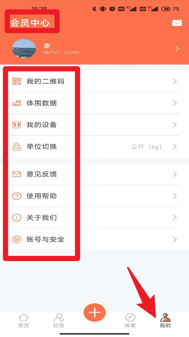 4.点击底部“我的”进入会员中心,可管理设备、单位设置、体围数据与账号安全等项目