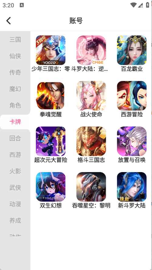 4、点开需要的游戏账号进入就会有很多的游戏账号类型。