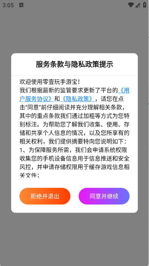 1、用户在本站下载零壹玩手游宝app,点击同意。