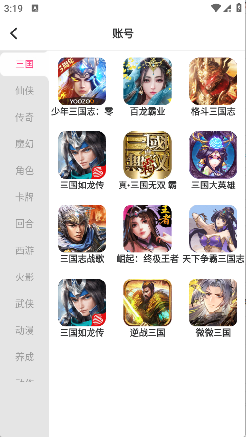 3、分类将游戏账号进行了详细的归类。