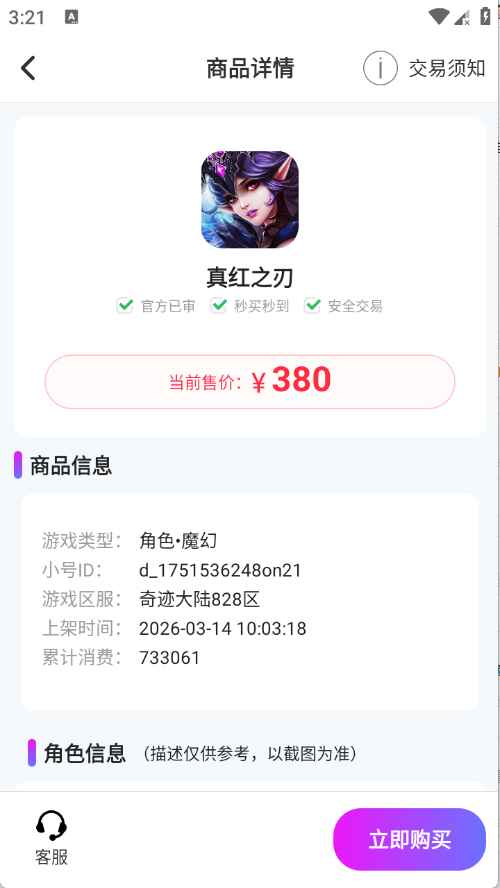 零壹玩手游宝是一款提供免氪省钱高氪霸服号、满级大神号、满V号等多种优质账号的手游平台。这里精选海量游戏号,涵盖仙侠、三国、传奇、挂机、回合制、修仙、魔幻、格斗、塔防、动作、武侠、二次元等各类游戏。玩家能在这里轻松找到心仪的游戏账号,畅享不同类型游戏的乐趣,无需为获取强力账号而烦恼,以丰富多样的账号资源满足不同游戏需求,开启精彩游戏之旅。