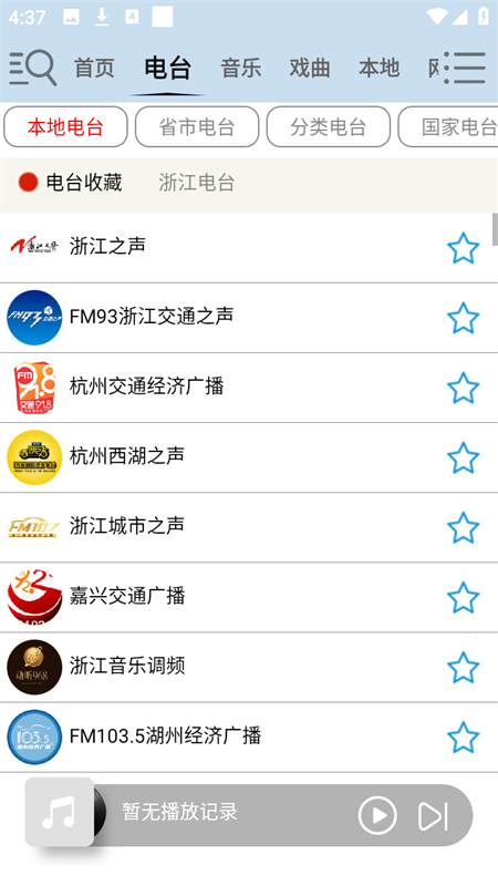 4、如果你不想听小说,还可以选择收听一些电台,有本地电台、国家电台、省市电台、电视直播等可以选择