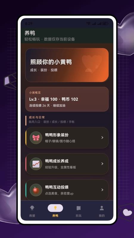 在应用中就能喂养可爱的小鸭子,每天都能给它投喂,使其慢慢长大,体验乐趣服务;