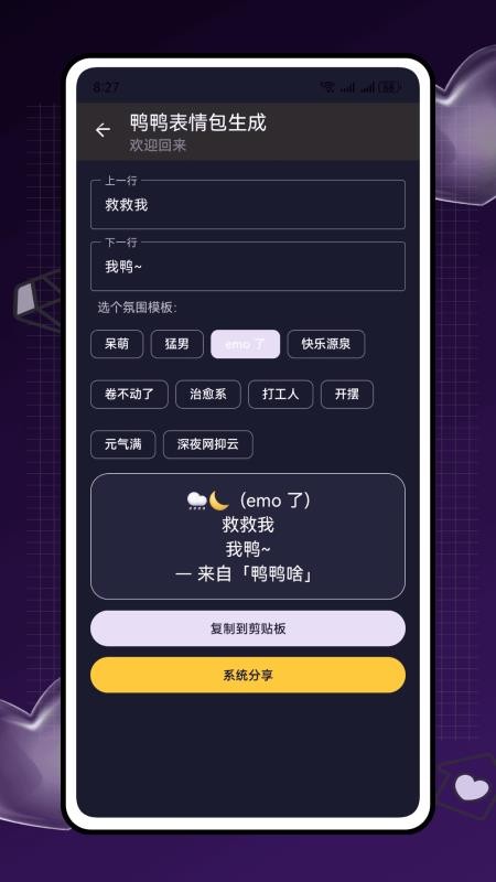5、非常智能的鸭鸭表情包生成工具,简单的操作程序,可完美生成并分享;