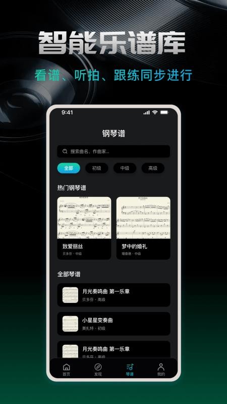 5、丰富多样的乐谱资源库,每一种都能完成且清晰呈现,练琴无忧;