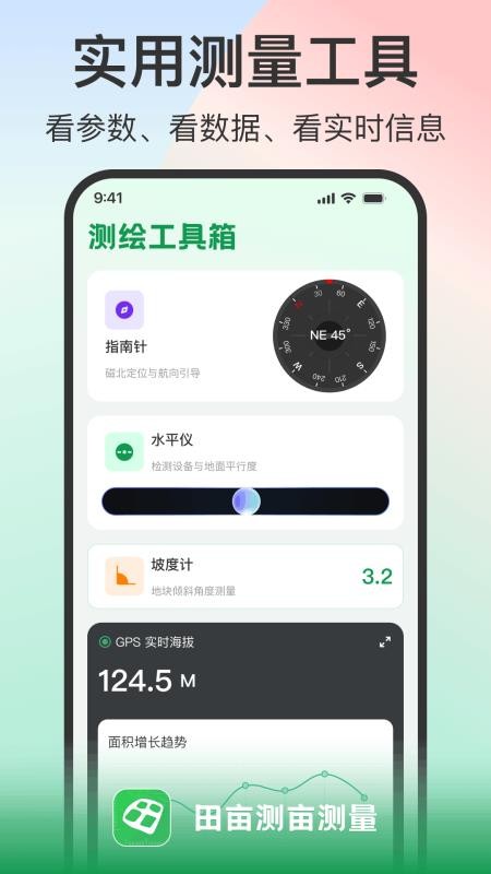 田亩测亩测量app官网版是一款专为用户提供田亩测量工具的应用软件,软件支持用户专业测量,这里可以多方面详细测量,有效进行步行测量,方便用户步行测量田亩数据,快速精准测量,实时记录行走的距离,以此来获取准确的测量记录,清晰记录下来。平台还会对用户测量的数据进行统计分析,生成详细的测量报告,清晰展示查看,便捷掌握历史记录,了解相关的增长趋势;此外,田亩测亩测量软件中还提供了多功能的工具箱,实用的测量工具都可选择使用,辅助用户来进行多场景测量,有需要的用户就赶紧来本站下载使用吧!