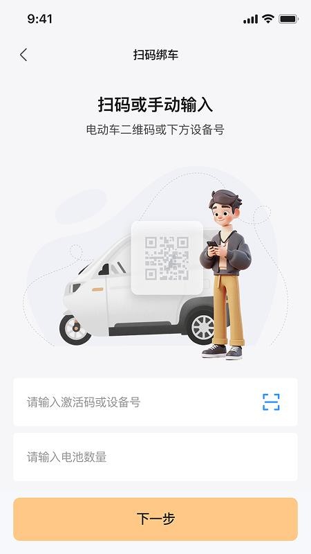 1、你可以通过软件开始绑定爱车了,输入爱车的激活码、设备号,还可以通过软件扫描爱车二维码;