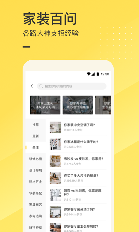 你可以找到:海量装修干货、屋主真实案例、过来人避坑经验、专属设计指南...