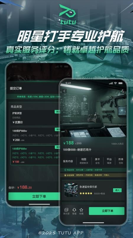 软件提供了专业的电竞护航陪玩,选择需要的陪伴就可一键下单,轻松下单购买。