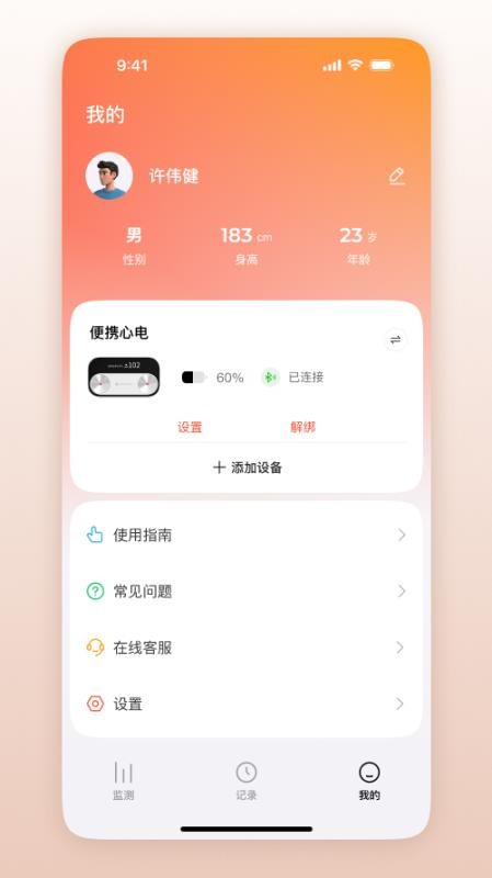 可通过蓝牙连接方式快速连接心电检测仪设备测量心率健康使用;