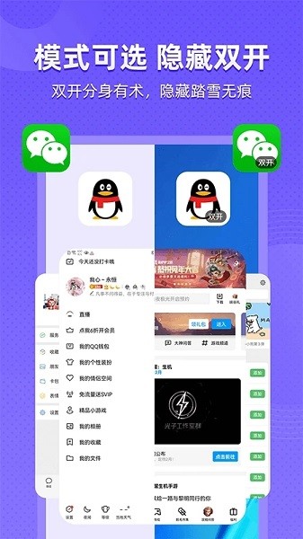 兼容安卓12、安卓11、安卓10、安卓9、安卓8系统版本手机,支持微信、qq、陌陌、王者荣耀等上千款手机应用。
