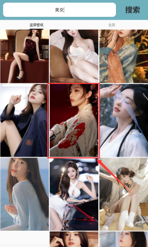 2、在顶部搜索框,输入关键词美女并搜索。