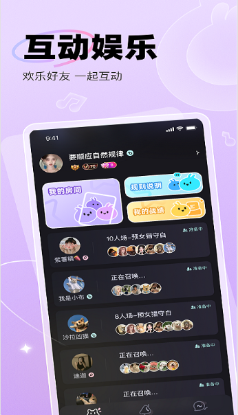 3、具备社交娱乐活动丰富,让大家自由的在线社交。