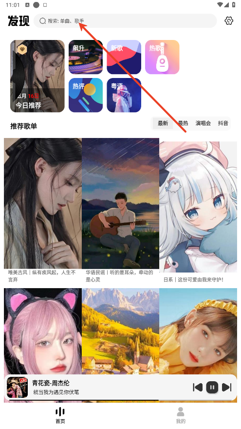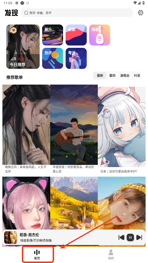 进入主界面后,您可以看到推荐的热门歌曲、歌单和专辑。