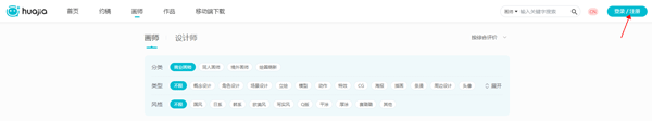 1、进入画加的官网,选择画师,点击右上角的注册进行注册。