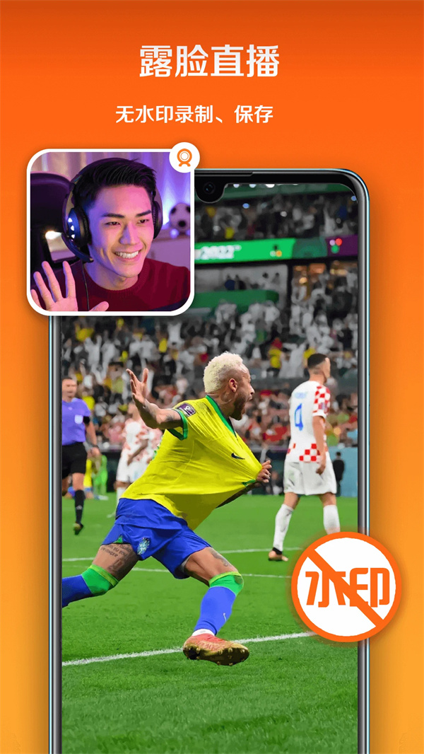 开摄像头实现露脸直播,录制人像与画面融合内容。