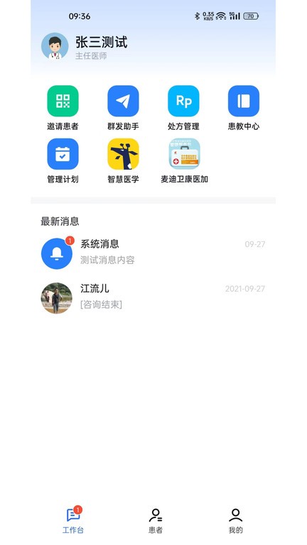 扫码邀请患者,医生分享二维码给患者的话就能让患者扫码入驻这里;