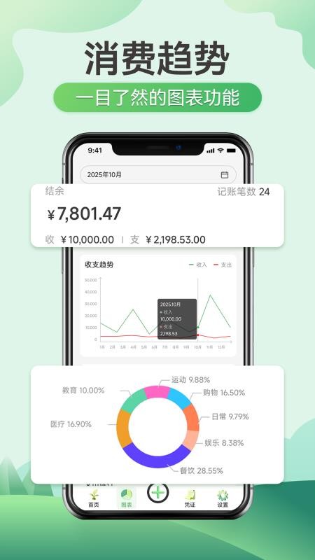 萌芽小账app是一款非常实用的生活记账软件,可以帮助用户轻松的完成各种生活记账操作,你可以通过软件轻松的管理个人的生活记账数据,以后就可以记录各种生活支出与收入账单了,软件会根据你记录的账单数据快速的进行数据统计,让你能够直观的了解个人的消费情况,记录个人的消费数据就会更轻松了;萌芽小账最新版符合用户的记账需求,你可以直接打开软件开启记账模式,无需任何繁琐的操作,这样能够让你的记账更加的轻松快捷,以后记账会更便利,是你生活中的记账好帮手,需要的用户快来下载,让你可以在生活中轻松进行不同的记账操作了!