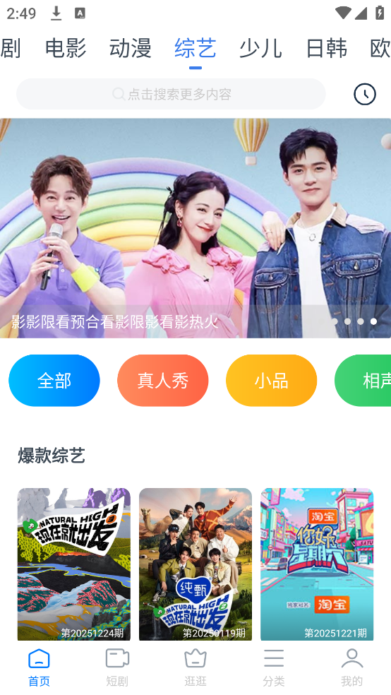 影视大全看看tv版电视版是一款可以满足想要在手机上或者是安装到电视上能够使用的可以想看热剧或者是综艺就可以点击影视播放的软件,这款软件内容丰富到超出你的想象,还可以看精彩短剧,详细的分类让你在这里轻松找到自己想看的内容,快来下载试试吧。