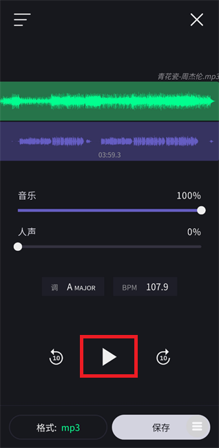 4、处理后可选择播放键在线试听