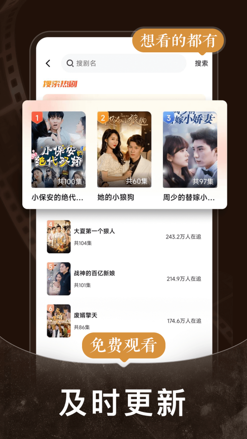 更新及时:免费短剧之家会实时更新最新的短剧作品,让用户能够观看到最新的、最热门的短剧作品。