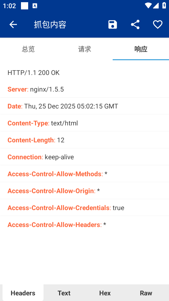 6、支持Raw、Hex、Text、Header等多种视图浏览数据。