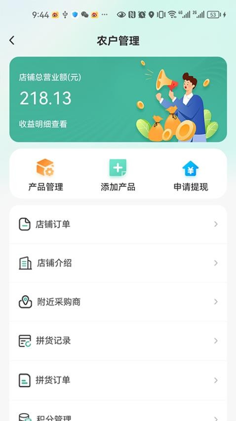 自家有农产品可以申请成为农户在线销售商品,添加产品来在线出售使用。