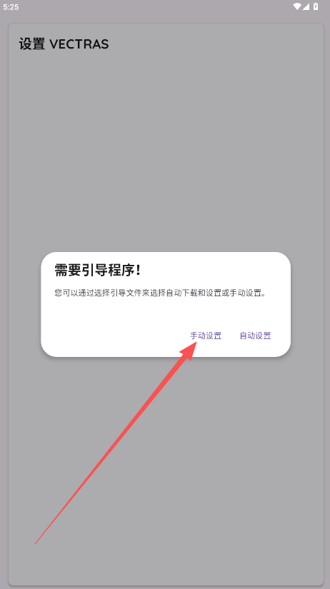 1、打开下载好的VectrasVM引导包,您可以通过选择引导文件来选择自动下载和设置或手动设置,这里选择“手动设置”最好。