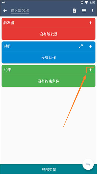 建立一个基础的功能,需要填写3个步骤,MacroDroid的触发器、动作和例外条件。